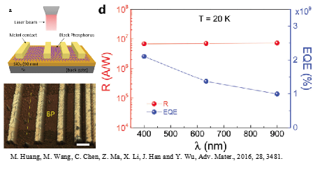 二維黑磷晶體對入射光非常敏感,光譜響應(yīng)范圍可涵蓋整個可見光到近紅外區(qū)域,如用于構(gòu)造光電探測器件,探測光譜范圍寬,且具有較快的光相應(yīng)速度,呈現(xiàn)出優(yōu)異的光電性能。